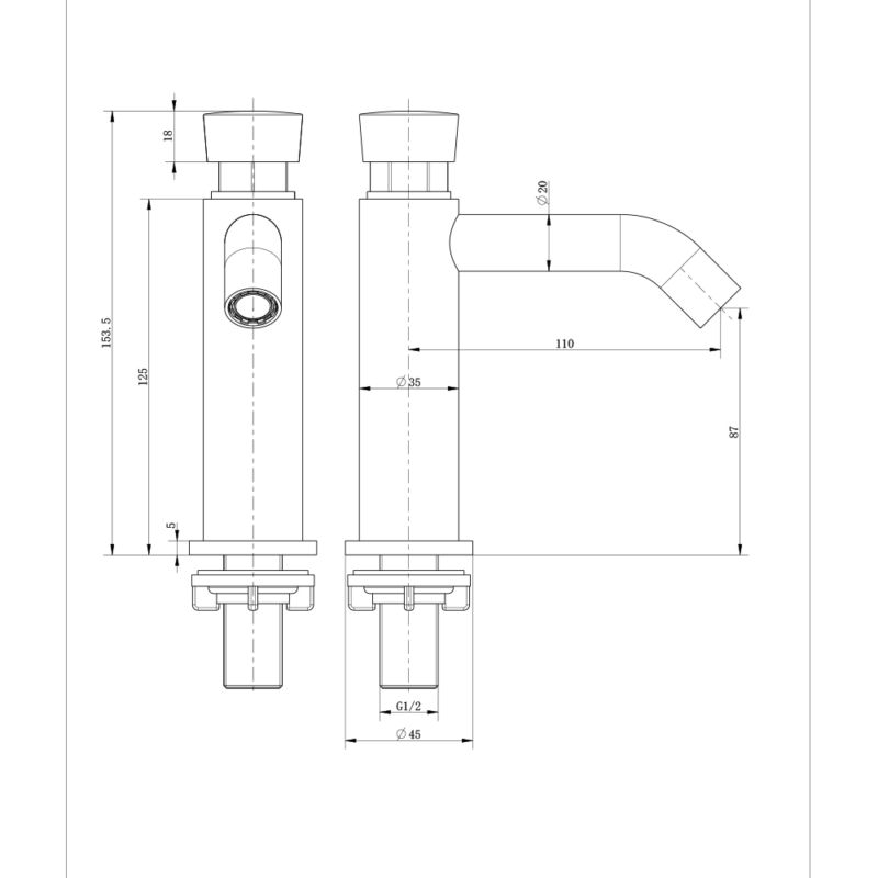 YS-17 Sento stainless steel self closing tap deck mounted